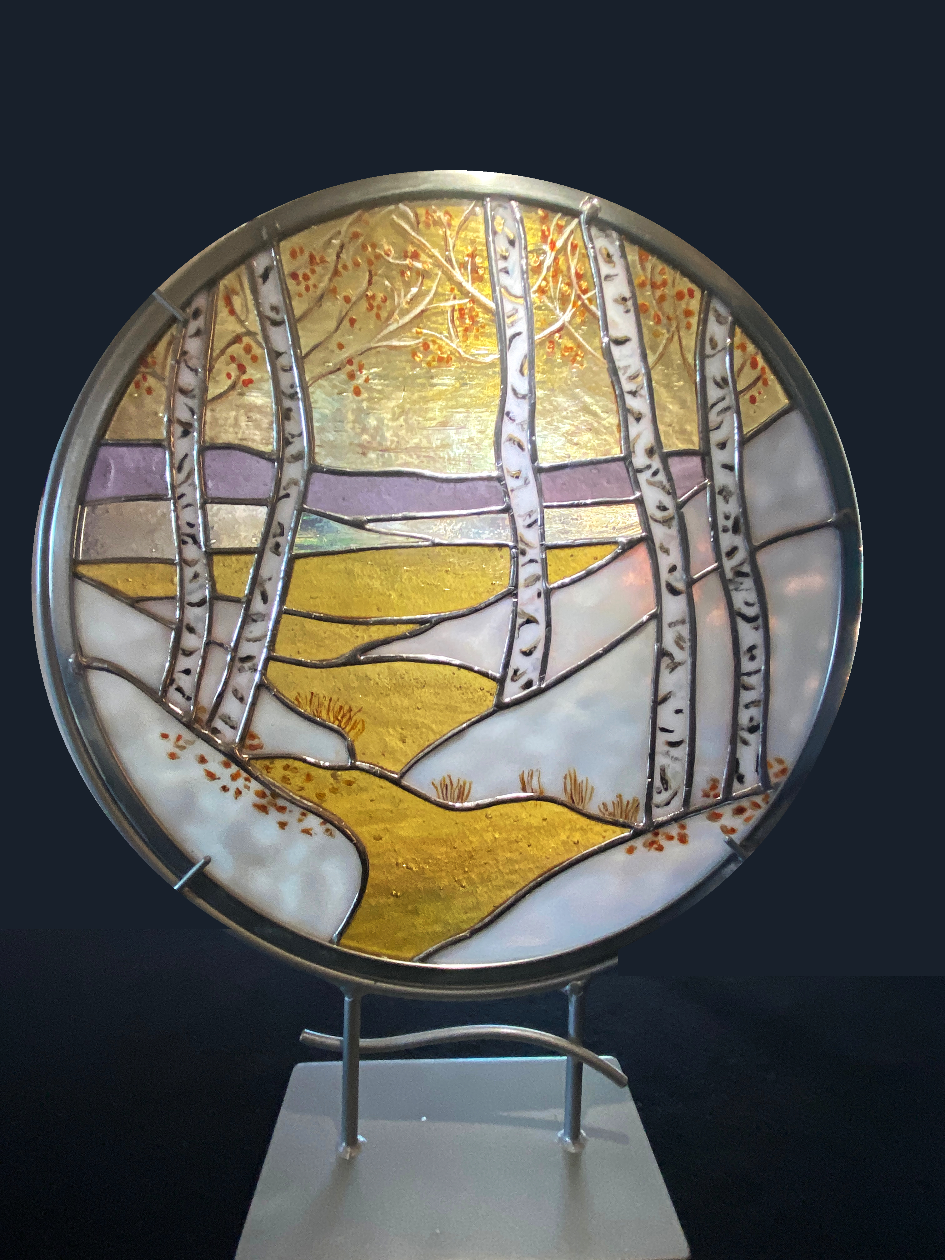 In her Waterscapes series, she develops form and line into an expression of ocean waves, wind ruffled lakes and quiet ponds. In the Music at Work series, she seeks to convey with color, form and line the experience of hearing music. In the Earthscapes series, she molds the diverse textures, transparencies and colors of glass into an experience that mirrors a moment in nature.